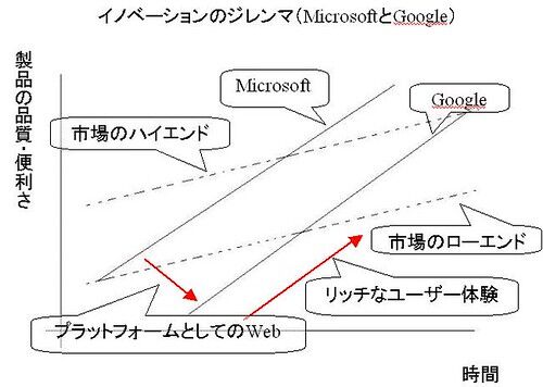 こんな感じの図とか使って発表します。この前のホワイトボードに書いたのは自分でも何書いたか分からないので… 「これ違うんじゃね?」って感じの突っ込みどころ満載ですが。Googleはローエンド切るような製品だそうとしてないですしね。